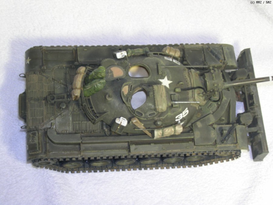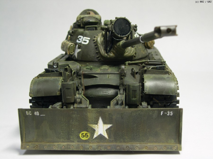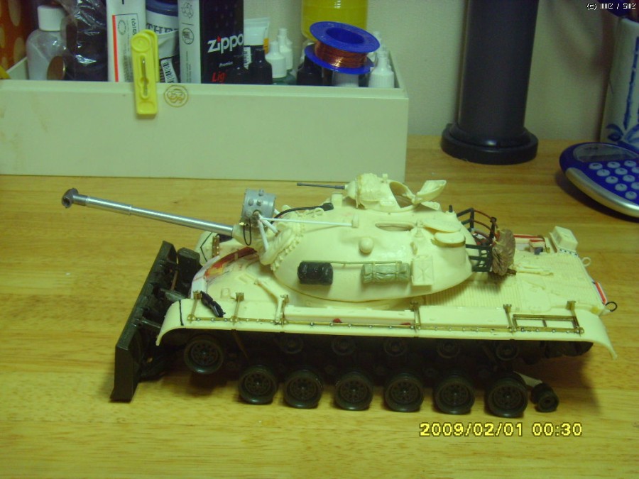 레전드의 M48A1과 아카데미 M60도져의 M9블레이드를 사용하고 M46패튼의 탐조등을 유용했습니다. 후방의 동력팩(?)으로 보이는 구조물과 동력파이프 일듯한 부분 등 나머지는 조금 자작해서 만들었습니다.