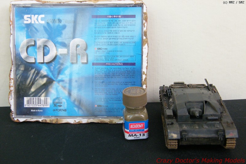 크기 인증샷. 1/48이지만, 원체 작은 전차여서 CD 케이스에 딱 올라가네요. ^^