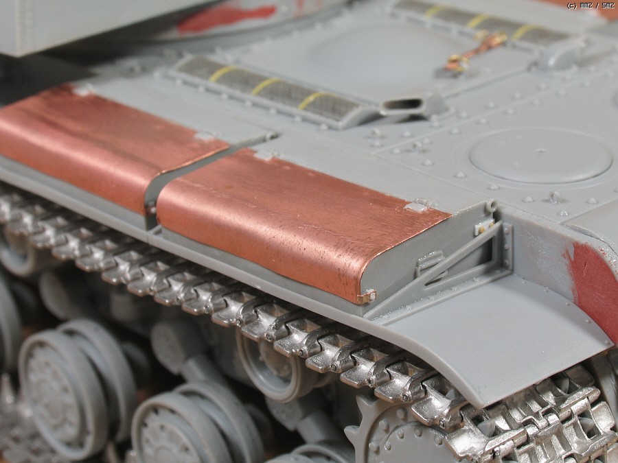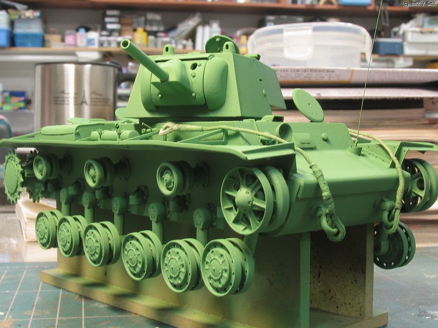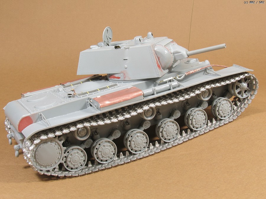 펜더 구부리다 짜개져서 땜방했고, KV-1 1939년형의 특징인 전방 총안구는 키트에 부품이 있습니다. 쇠사슬 추가.