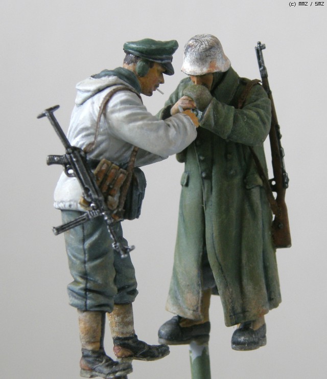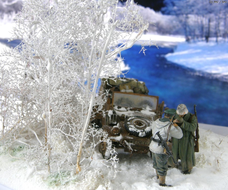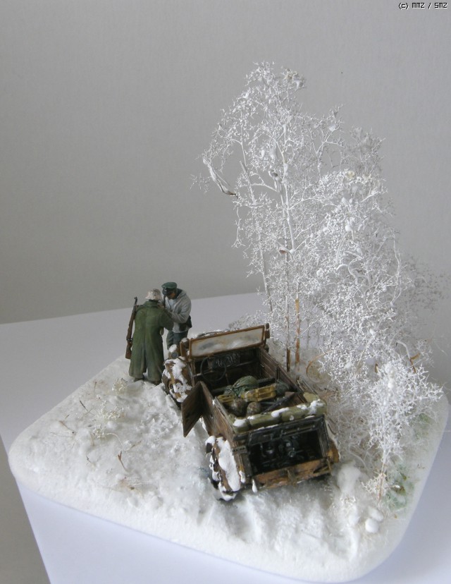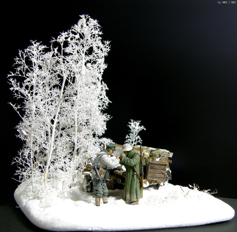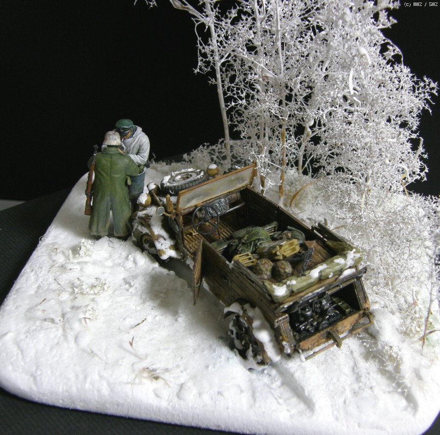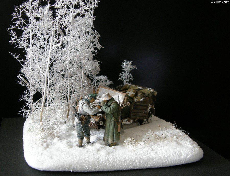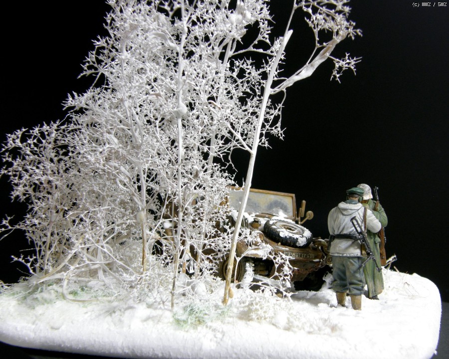 담배를 나누어 피우는 두병사의 동계 위장복과 군복을 입은 모습이 멋져보여서 눈덮인 들판일부를 연상하여 퀘벨바겐과 병사를 이용 하여 잠간 휴식을 취하는 장면을 연출 해 보았습니다. 초여름에 왠 눈밭 이냐고 생각 하시 곘지만 ....... 그냥 편하게 봐 주십시요 감사 합니다.