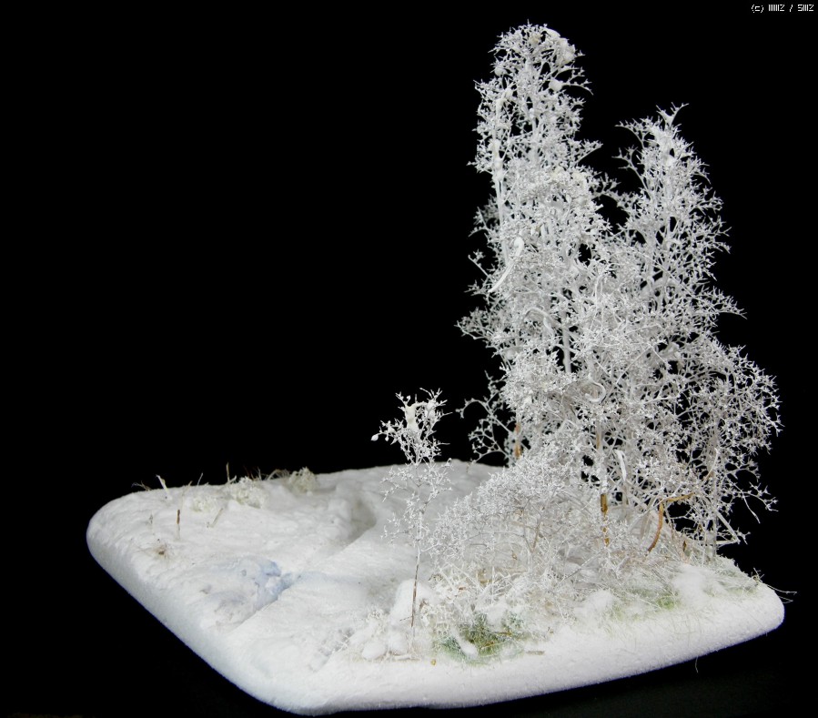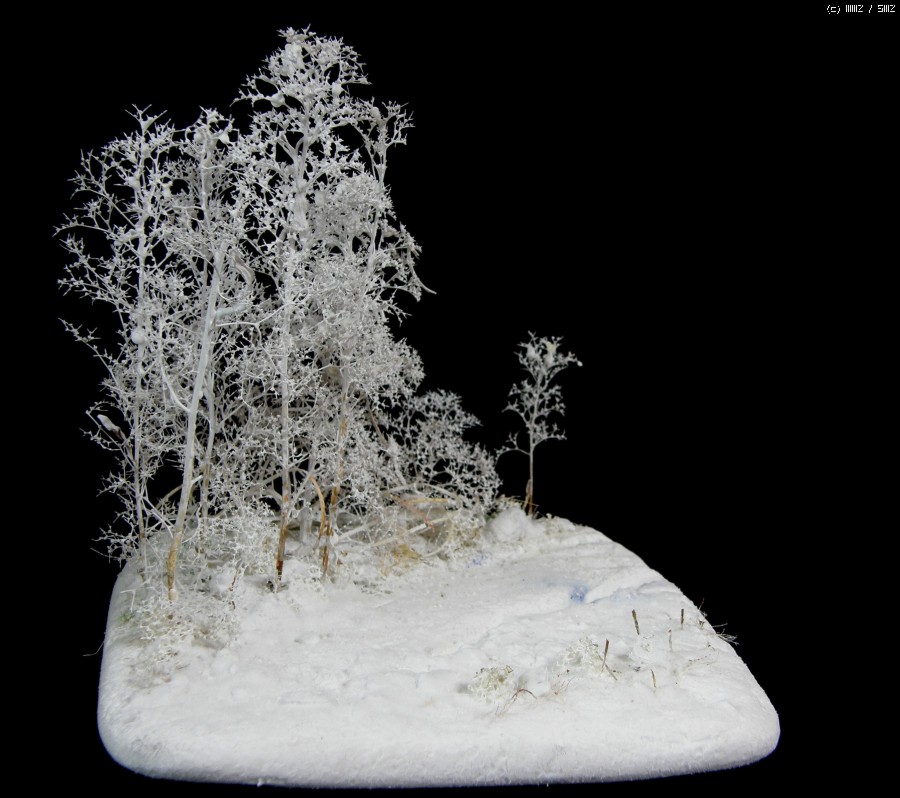나무의 눈 표현은 흰색 스프레이로 뿌려 줬습니다. 바퀴자국 표현
