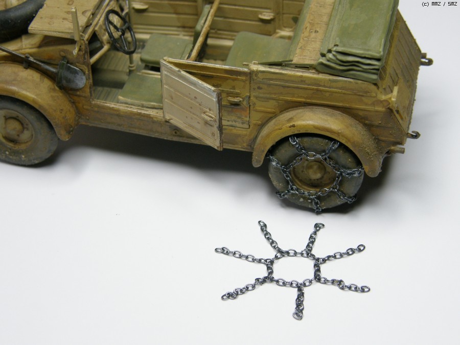 타이어의 체인은 악세서리로 만들었습니다.
