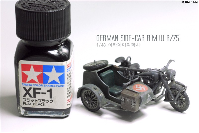 비행기 만들고 쉬는 틈을 타서 아카데미과학교재사의 48사이즈 반다이 모델 카피판 사이드카입니다.