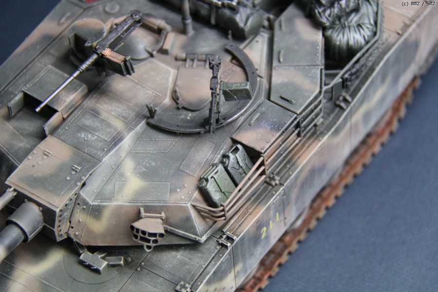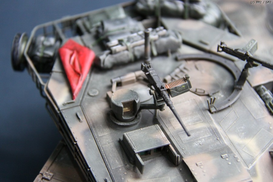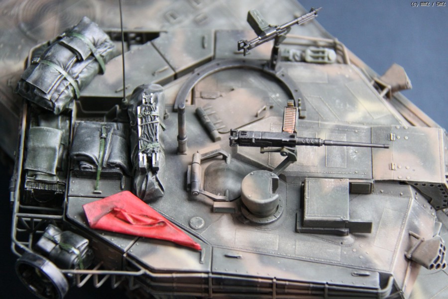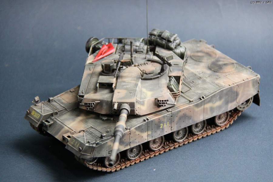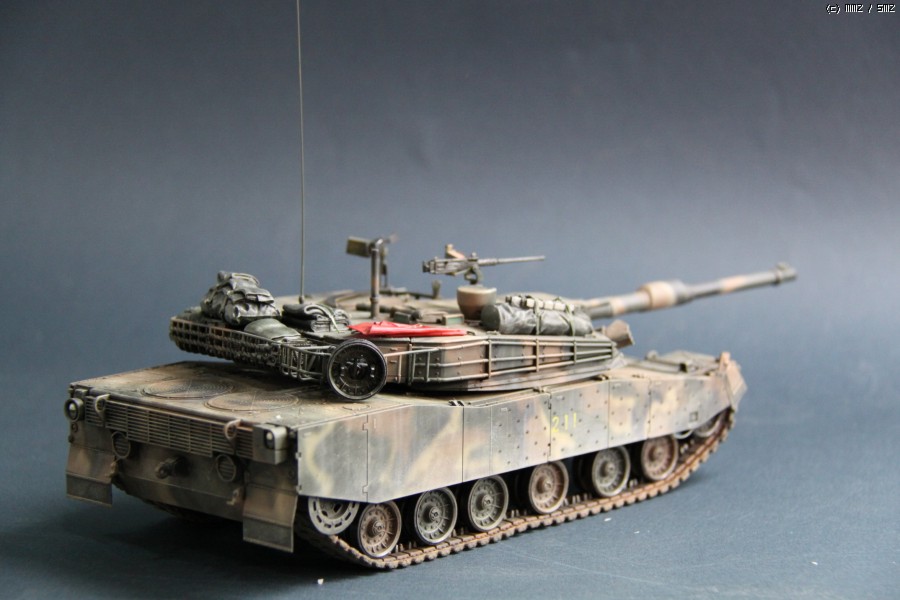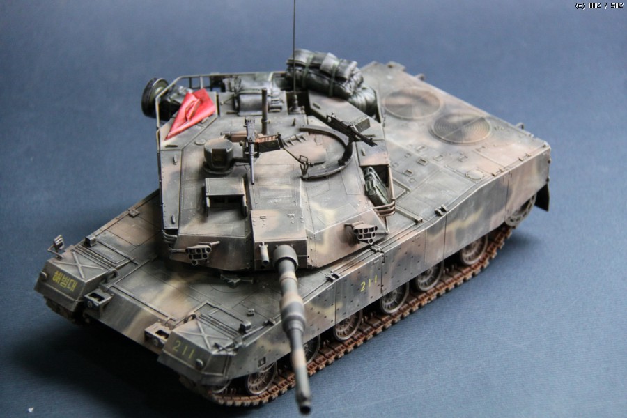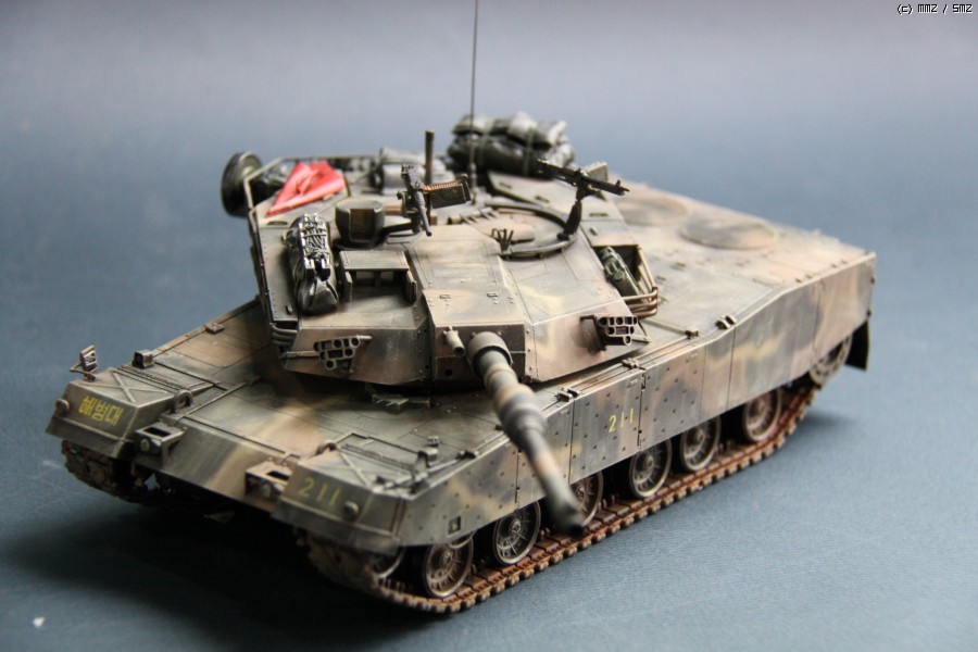K1A1 해병대 버전 입니다. 아직까지도 해병대에는 K1만 배치된 상태라..미래의 컨셉 되겠습니다. 많이들 깃발로 사용하시는 부품은 대공 식별용으로 사용하였습니다. 글씨및 숫자는 손으로 그린거라서..다소 삐뚜루~합니다^^ 설정은... "양포 종합 기동사격장" 인데, 사격컨셉치고는 장비품이 다소 많은듯 합니다. 위장무늬는 에어브러시 작업이며 해병대 K1은 육군과 달리 포탑과 차체 상부에도 TAN 색의 띠가 들어갑니다..