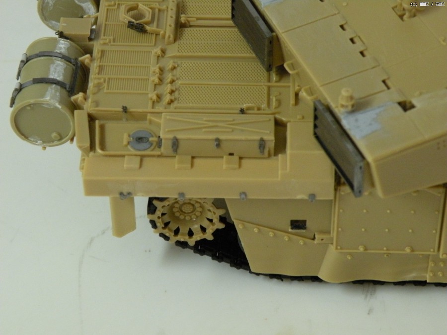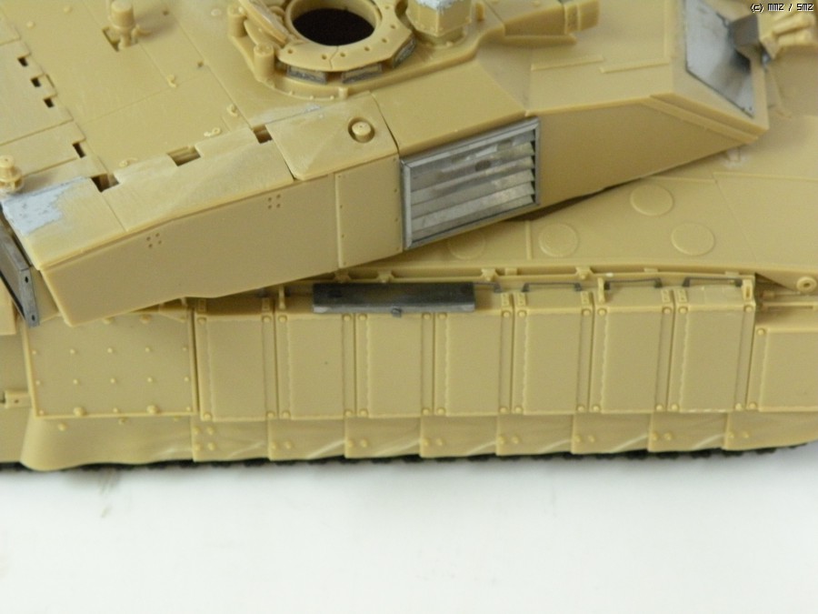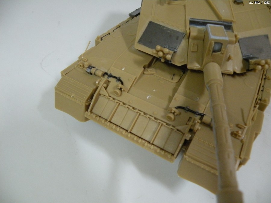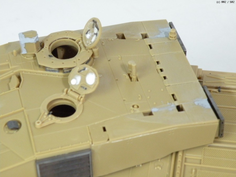 가장 맘에 안드는 부분이 포탑 상면입니다. 공구통 부품이 잘 맞지 않는건 둘째 치고라도 평평한 challenger의 상판 모습이 잘 표현이 안된게 아쉽습니다..나름대로 무지하게 갈아 냈습니다.