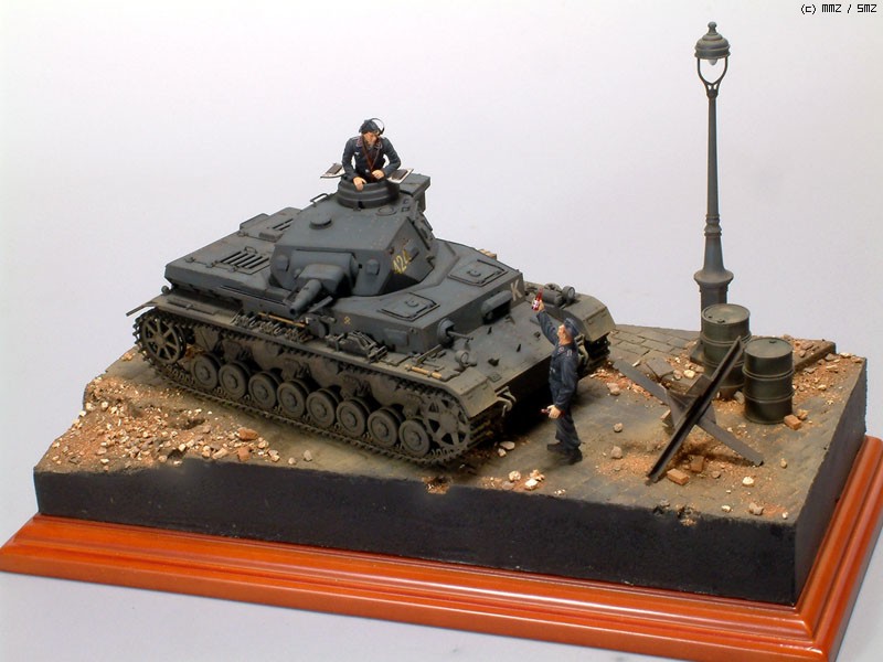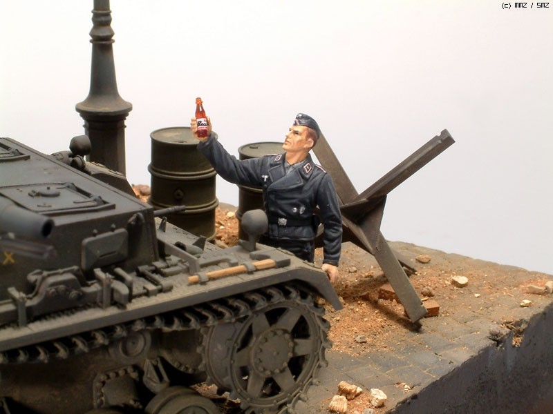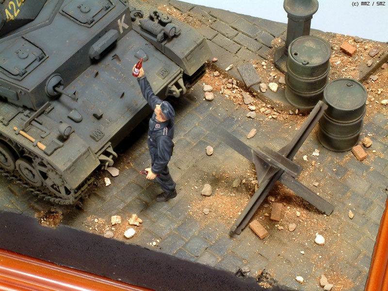 드럼통, 가로등은 타미야 제품을...바리케이트는 이타렐리의 것을 사용했습니다.