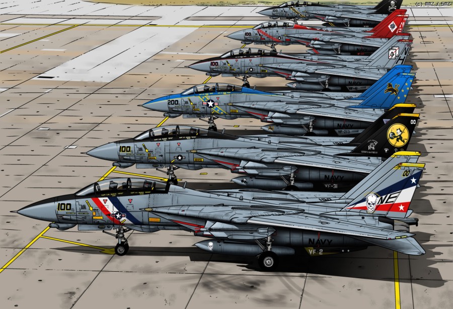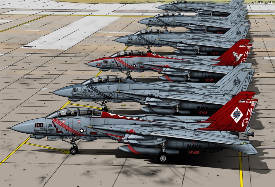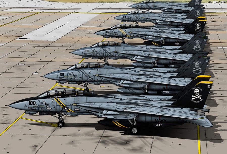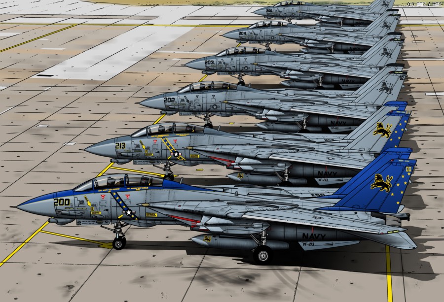 이번에 올린 그림은 톰캣비행대 대장기들을 한자리에 모아보자라고 마음먹고