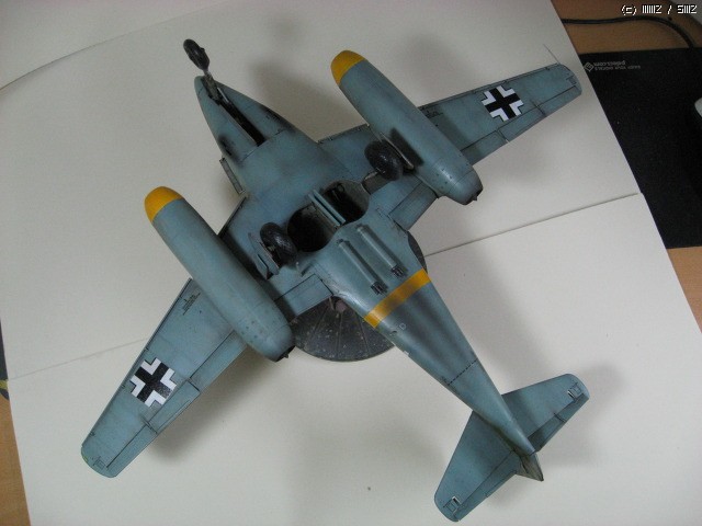 기수에는 낚시용 봉돌이 한 봉다리 들어 가 카운터 웨이트를 만들었습니다. 노란색 띠는 데칼로 되어 있지만 마스킹을 통해 스텐실을 했습니다. 주로 AFV를 만들다 모처럼 완성한 에어로이니 부족 한점 많더라도 이쁘게 봐주시기 바랍니다.
