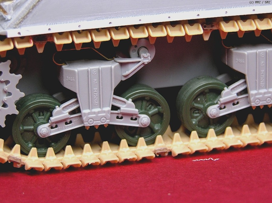 궤도는 좀 '쉽게' 가려는게 목표였기 때문에 처음부터 연결식 궤도는 포기하고 드래곤 DS트랙을 별매로 파는 것을 구입해서 사용했습니다. 디테일도 좋고 가공하기도 좋은데 한가지 아쉬운점이 덕빌을 떼어낼 수가 없다는 단점이 있지만 아트나이프로 따내고 AFV클럽제 별매궤도의 부품을 이식하여주니 그런대로 봐줄만 합니다^^;