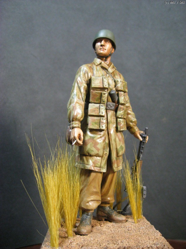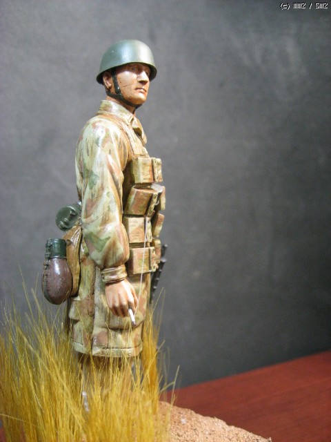 오랫만에 만들어본 피겨입니다. 1/16 드래곤의 시리즈고 얼굴 기본도색 외에는 거의 붓도색으로 만들었습니다. 풀은 우드랜드시닉의 풀 재료를 사용 했고, 마지막 담배연기는 런너 늘린것으로 표현 했습니다.