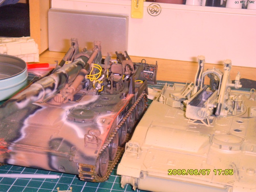나름 선을 깔아가며 만들고 있는놈이 한국군 위장무늬 차량이고 사막색이 원 키트 상태 그대로입니다.