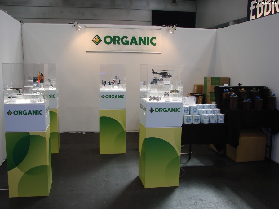 오가닉의 빈티나는 부스. 일단 메인 신상품은 1/32 완성품 블루썬더. 공각기동대의 '웃는 남자' 로고가 그려진 깡통을 일반공개일에 판매할 예정이라고 써붙여놨는데, 그 정체는...(다음 글에서.)