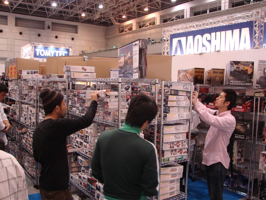 일반공개일이 되면 업체 부스들도 변신을 합니다. 전시물 주위에 팬스를 치거나 일부 신제품에는 촬영금지 딱지를 붙이기도 하고, 비지니스 상담공간을 줄이고 그 자리에 판매코너를 설치하지요. 여기는 아오시마 부스.