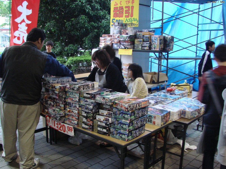 회장 바깥에 매년 차려지는 노점들. 근처 모형점의 출장판매가 아닐까 싶습니다.