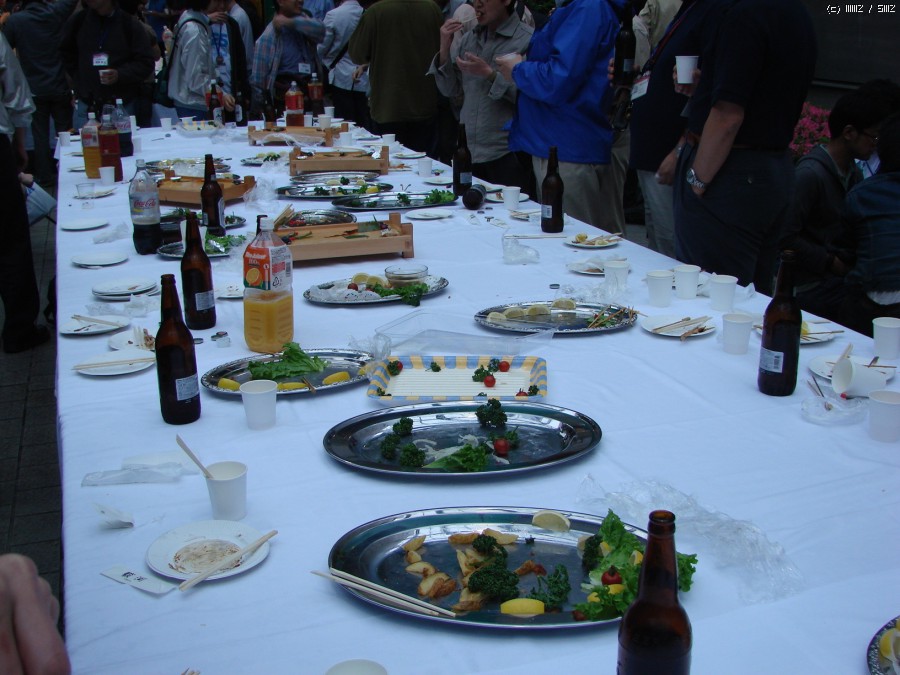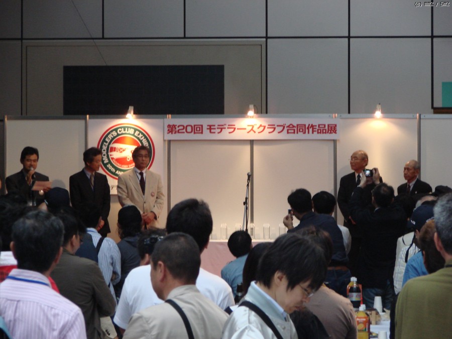 저녁에 열리는 타미야 주최의 만찬. 모델러스클럽 합동 작품전 참가 클럽의 회원은 누구든 무료로 참가할 수 있습니다.