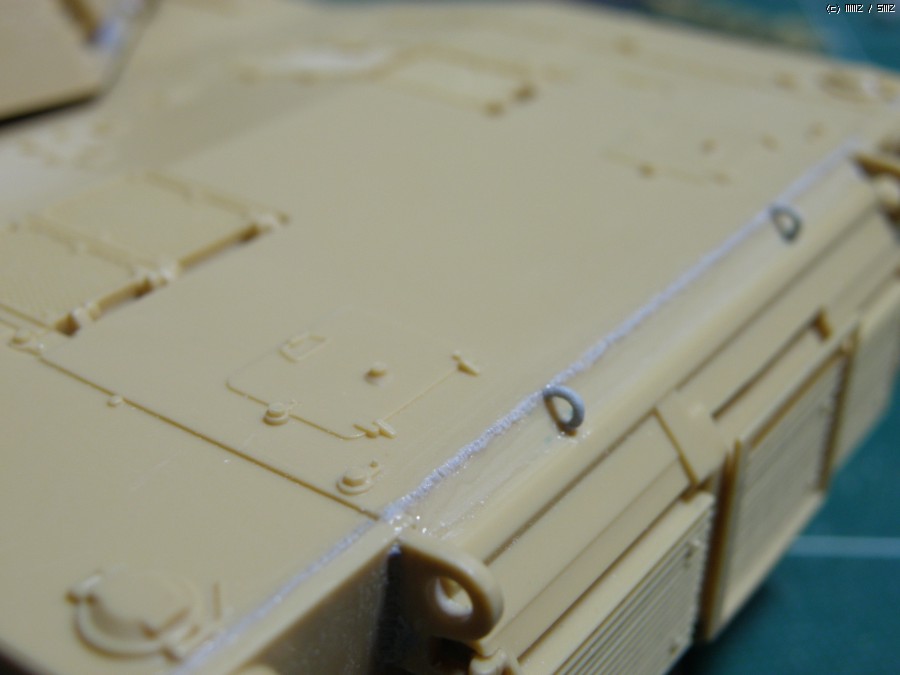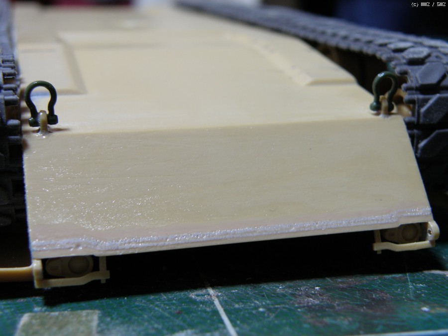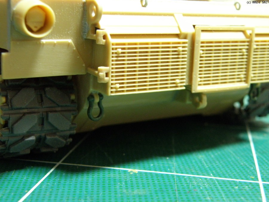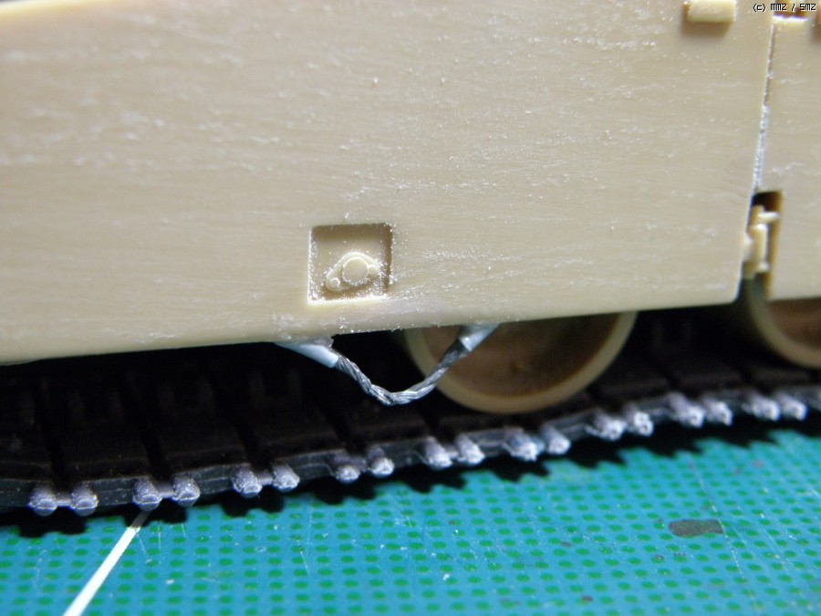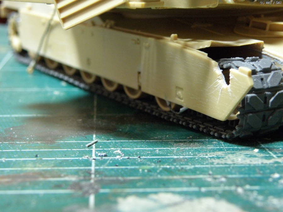 원래는 스프로킷까지 이어지는 사이드스커드인데 실전에서는 진흙이 많이 끼어 궤도이탈이 잦다는 이유로 뗀다더군요..