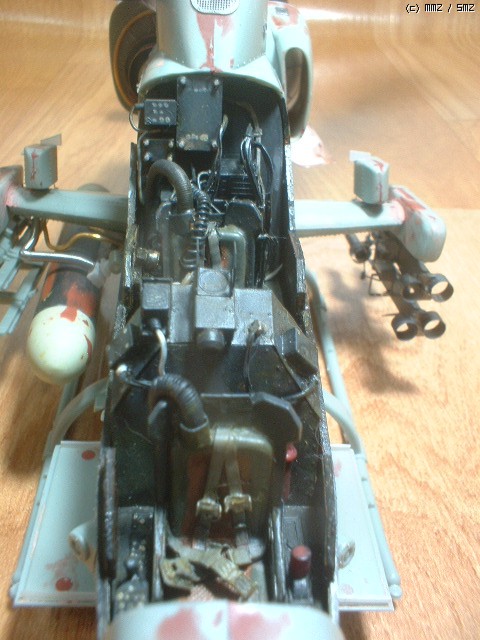 헬파이어 자리엔 원래 자위용 사이드와인더를 달아주려다가.. 그래도 명색이 대지 공격용 건쉽 인데 전차킬러 헬파이어 하나 안달아주기가 미안해서 사이드 와인더 대신 헬파이어 레일을 달아주었습니다.