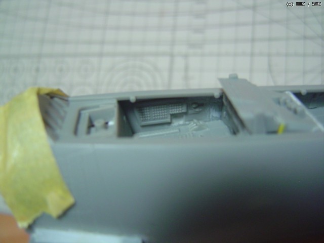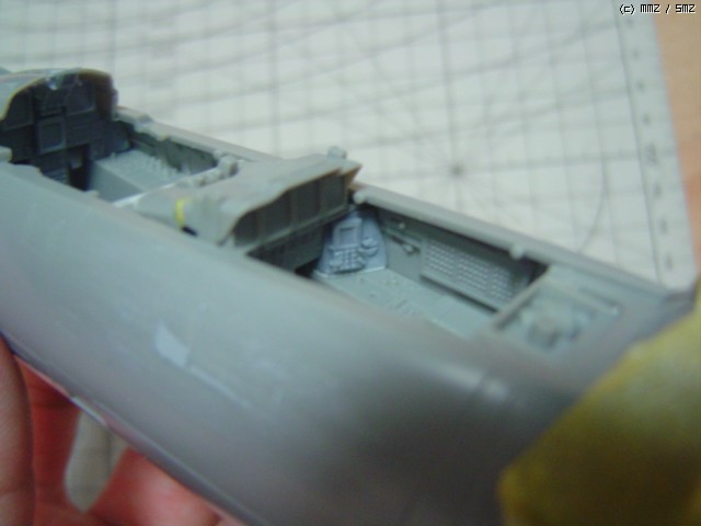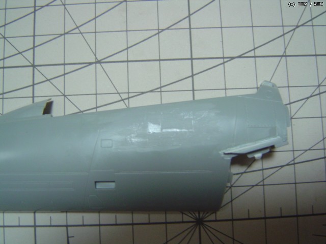 내부 수정작업을 거친뒤에 엉망이 된 기체 외부를 퍼티와 줄로 다듬은 사진입니다.