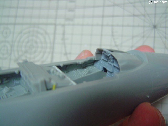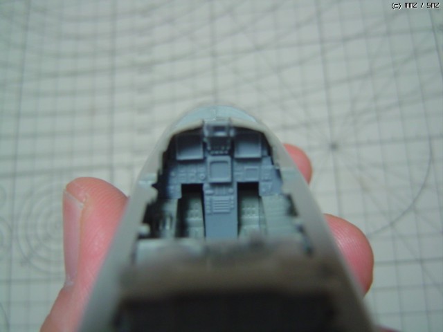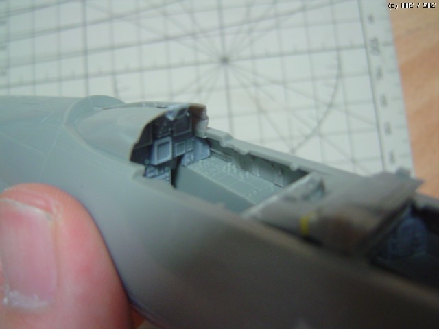조종석이 전체적으로 위로 올라오면서 계기판과 쉴드가 원래보다 밀착되어 버렸기 때문에 계기판 뒤쪽과 쉴드 안쪽끼리 간섭되는 곳이 없도록 양쪽 모두 깍아냈습니다.