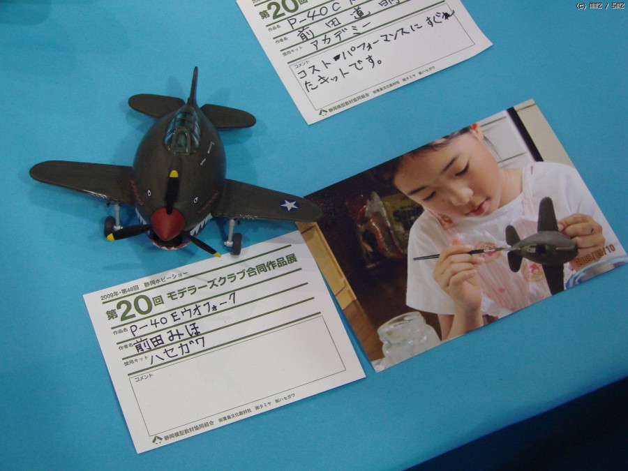 아빠가 만든 P-40 옆에 같이 전시된 딸의 계란비행기 P-40.