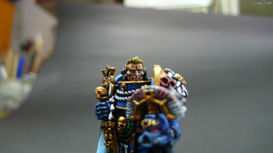 워해머에등장하는 시카리우스라는 장교입니다.화이트메탈이고요.원래 뒤에배너를 달고있는데 아직 작업중인지라....