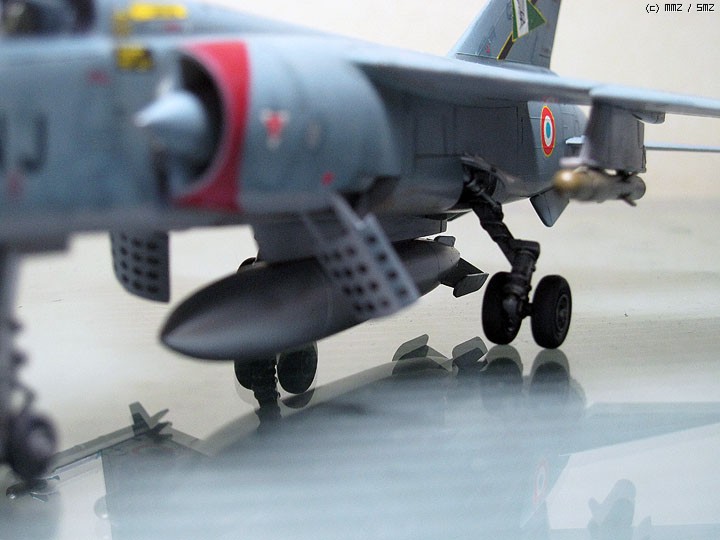 연료탱크와 매직은 그대로 사용하였으나, R530 미사일의 외형은 다소 촌스러운 느낌이 들어 가지고 있는 이탈레리의 미라지 2000C 키트에서 듀란달 활주로 파괴폭탄 두개를 빌려왔습니다.