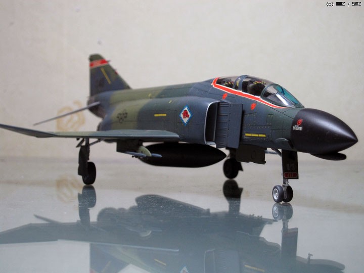 인터넷을 열심히 뒤져 이 주방위 공군의 팬톰 사진들을 많이 보았으나 대부분 기지공개 행사 등이 아니면 무장을 주렁주렁 달아놓은 사진이 없었습니다. 있어봐야 사이드와인더 훈련탄 한두발에 조종사 개인물품용 컨테이너 정도? 연료탱크 하나만 탑재한 날렵한 모습도 괜찮아 보여 이대로 완성하였습니다.