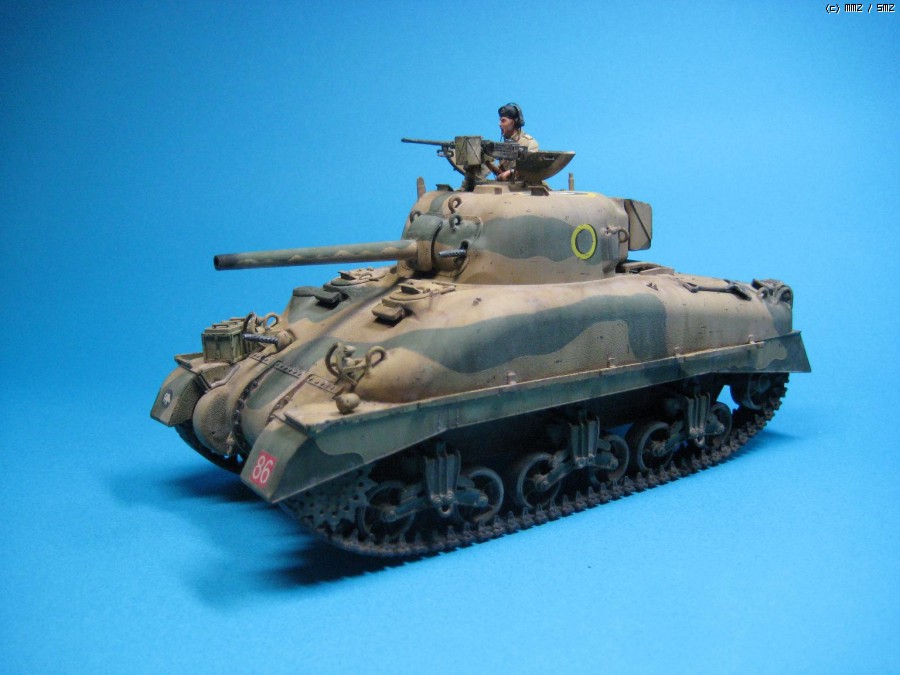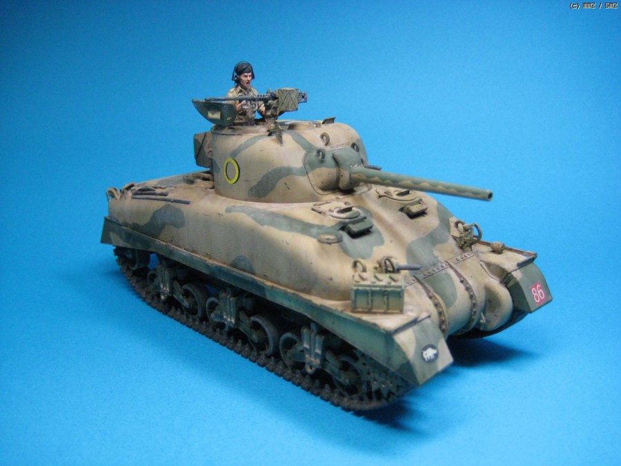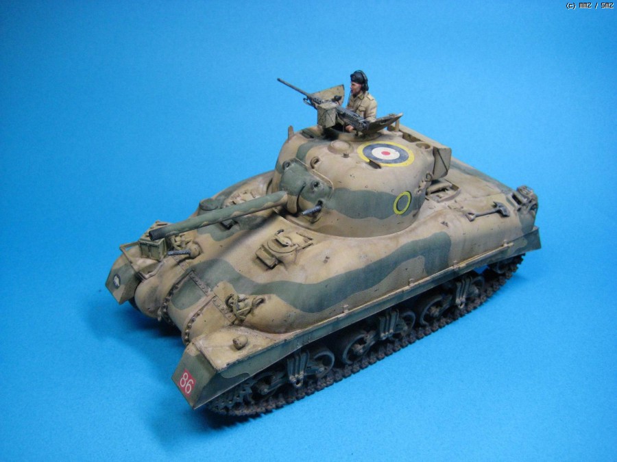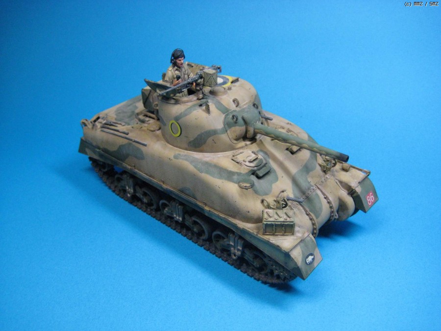 1942년 8월 연전연패하던 영국군 제 8군 사령관으로 취임한 몽고메리의 지휘아래 1942년 10월~11월 치열한 전투끝에 '사막의 여우’ 롬멜이 지휘하던 독일의 아프리카 기갑군단을 패배시켰던 북부 이집트 El Alamein 전투 버전의 British army sherman II로 Tasca사의 제품입니다. 험브롤 Brown yellow 및 light olive로 기본도색후 로엄버컬러로 유화 워싱후 미그 피그먼트의 'dry mud'로 마무리했습니다. 전차장의 머리는 원형이 별로 맘에 안들어 호넷사의 머리로 대체해 주었습니다. 가볍게 감상하시고 조언 부탁드립니다. 감사합니다.