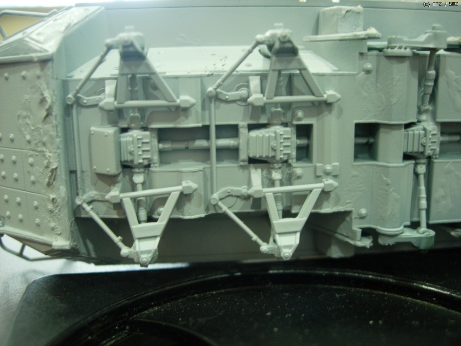 밑부분 제작하는데 거의 2주 정도 걸린 듯 합니다...부품들 수도 많고 작아서...게다가 수전증까지 한몫을 하였습니다...나중에 웨더링을 하려고 약간의 거친 퍼터질을 군데군데 해주었습니다.