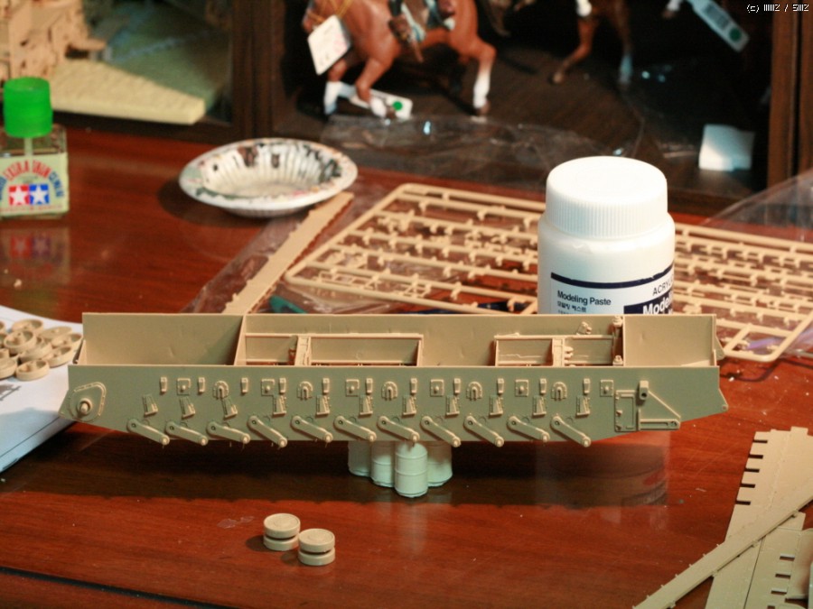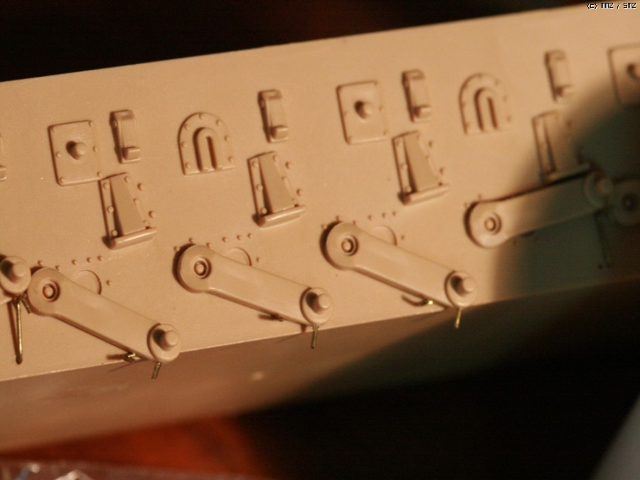 열차수송시와 자체이동시의 가장 큰 차이가 서스펜션이 위로 올라가느냐 여부인데..서스펜션을 가동식으로 하여서 두가지 형태가 모두 가능하도록 개조를 시도해 봤습니다.(사격시에도 토션바가 올라가기는 하는군요..)