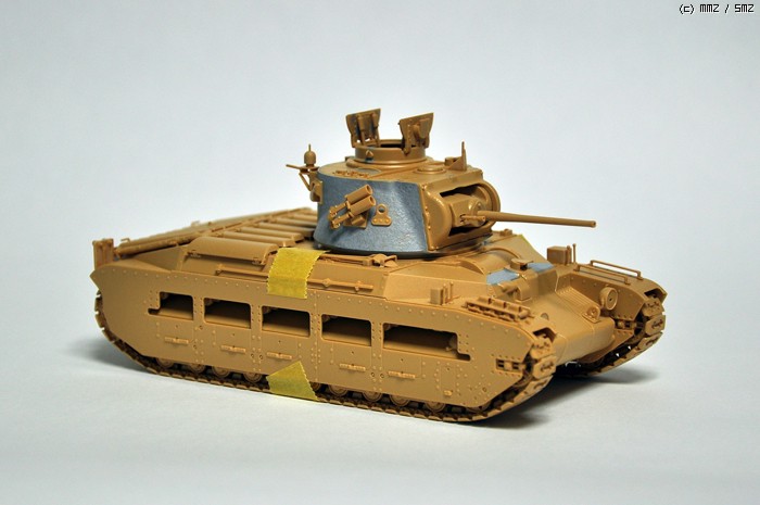 타미야 올드모델인 MM35024 British Infantry Tank Mk.IIA의 리메이크 버전 MM35300 Matilda Mk.III를 조립만 마친 상태입니다. 스커트는 도색편의를 위해 마스킹 테이프로 걸어만 놨습니다.