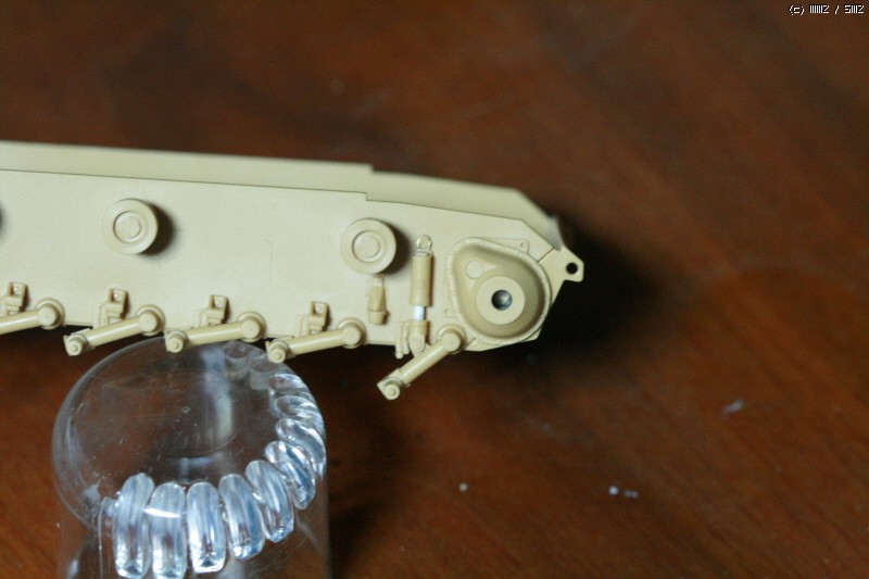 실제 전차가 어떨지는 모르겠으나, 이렇게 개조하고 나니까 6개 바퀴 모두 서스펜션을 가동시킬 수 있고, 맨앞, 맨뒤바퀴는 지지대가 있어서 다른 바퀴의 서스펜션이 탄성이 약해서 주저앉을 염려도 없을 듯 합니다...