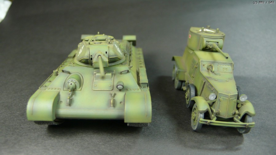 작업중인72스케일입니다.t-34는드래곤제이고ba장갑차는 um이라는 우크라이나제품인데 이회사제품 생각보다 좋더군요.저렴한가격에 아주강추입니다.이넘들갖고 뭘더해주어야할까 고민중입니다.웨더링을 더해줄지 인형을 끼워서 그냥 완성할지 고민되는군요.완성되는그날까지....