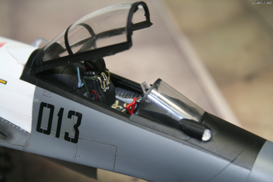 SU-30의 큰 특징인 캐노피 앞부분의 기존 27은 중앙에 위치하였으나 약간 오른쪽으로 치우 것으로 변경하였고 사출좌석은 기존 아카데미 헤드레스트에 레진좌석으로 마무리 하였습니다