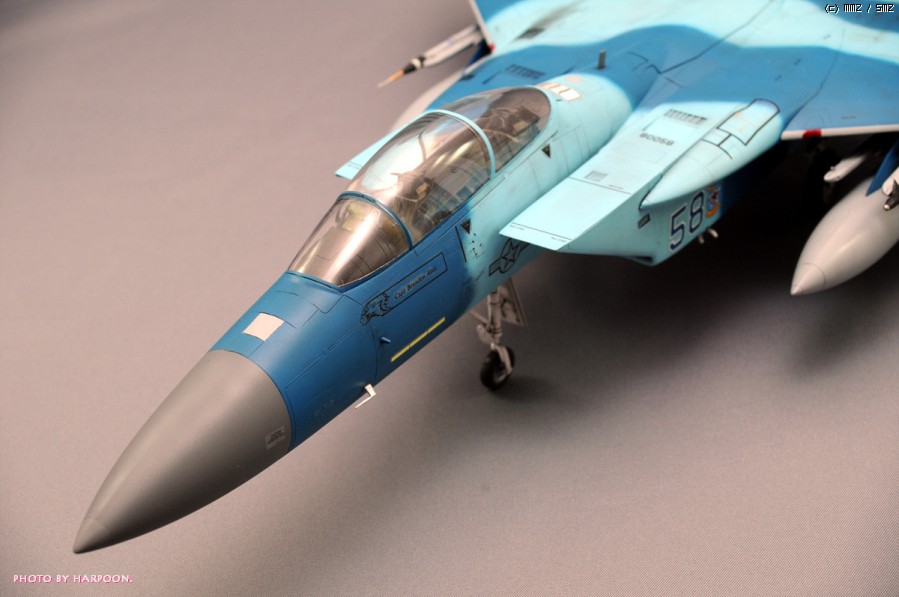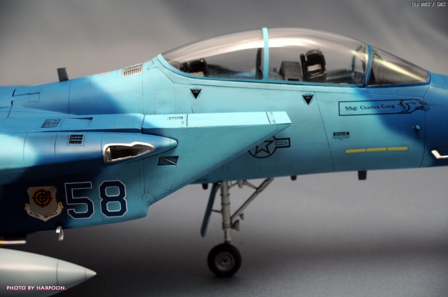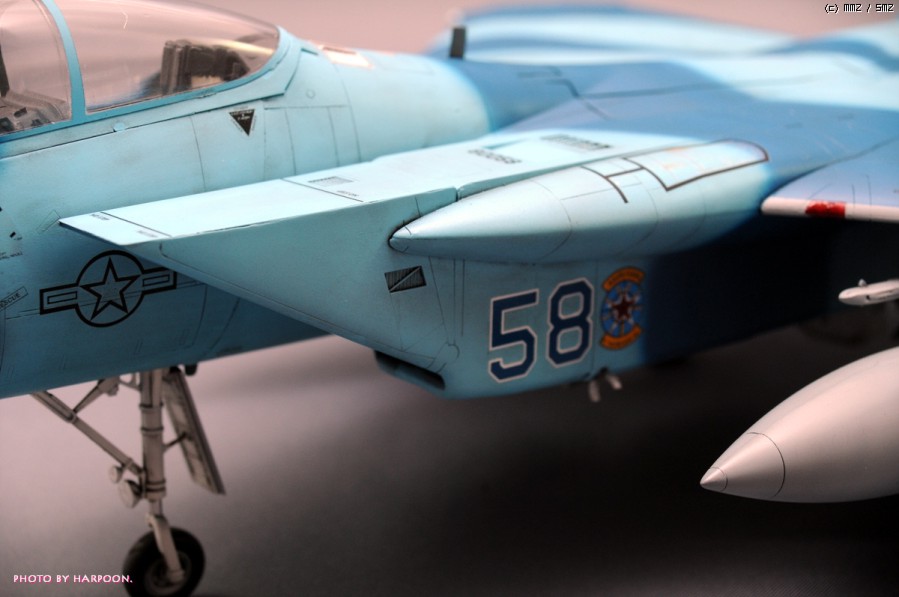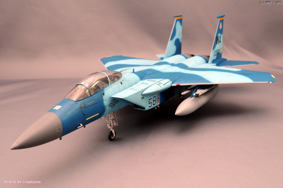 아카데미 1/48 C/D형에 울프팩디자인의 F-15C Aggressor Eagle update set과 애프터버너사의 별매데칼, 하세가와 Aircraft Weapon D형에 포함된 Target pod를 사용해서 만들었습니다.