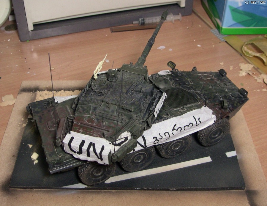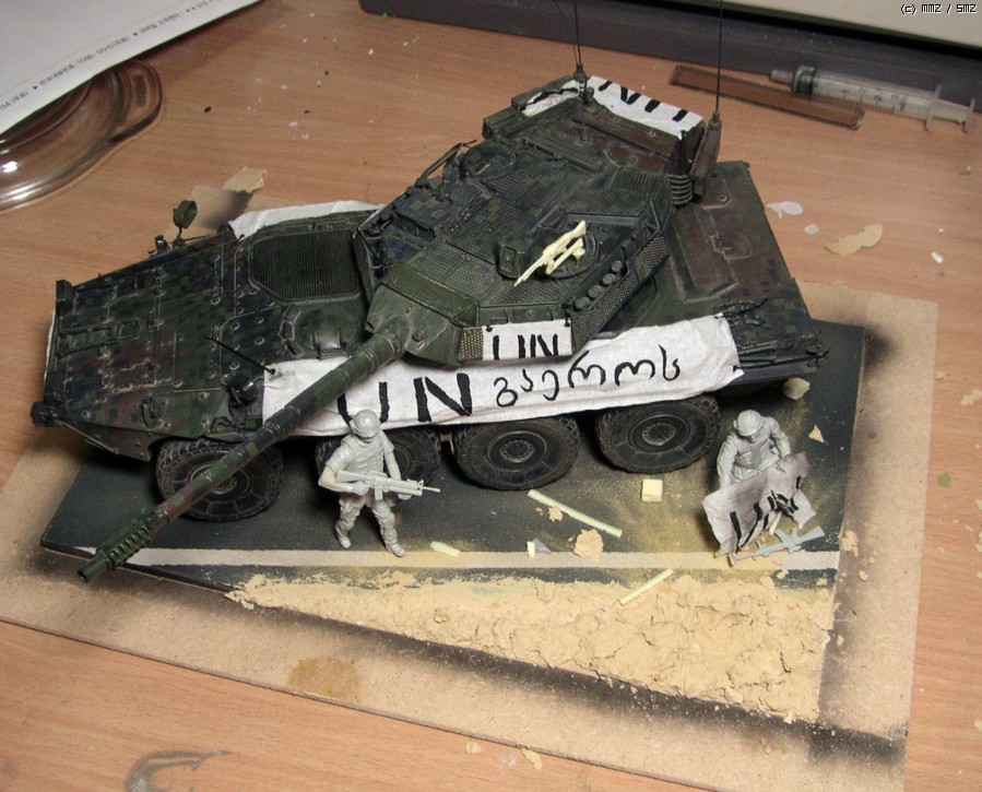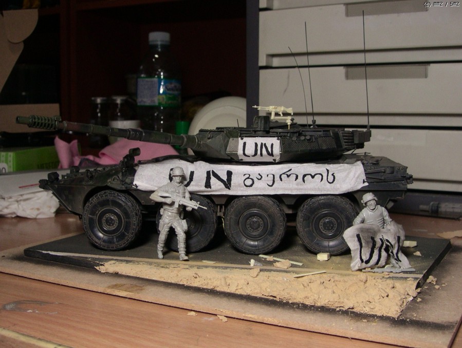 장갑차는 이태리/스페인인데 보병은 미군이라 어떻게 할지 고민하다가 헬멧만 푸른색으로 씌우면 다 통하는 평화유지군으로 했습니다.