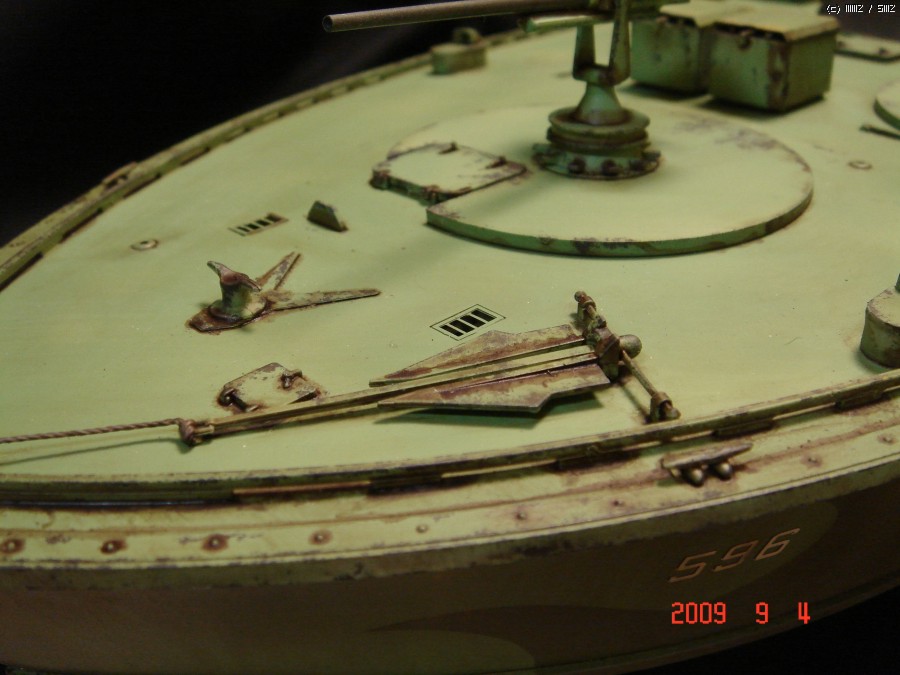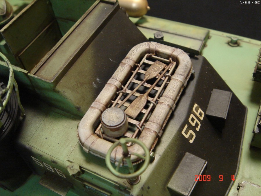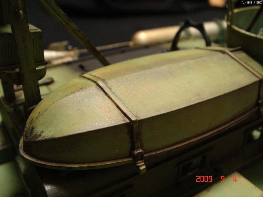 크기가 크기인지라 만들면서 애먹었습니다. 구명정도 아이들 손바닥 만하니 워싱등으로 공짜로 먹는 디테일은 하나도 없고 전부 다 일일이 그려 넣어 줘야 봐줄만해지니...게다가 칼라도 비교적 쉬운 그레이가 아니라 그린계열이라 생각 보다 넓은 면 처리가 어렵더군요...암튼 괜한 욕심에 없는 실력 들통나고 고생만 한 것 같습니다. 만든 후 포쓰가 나름 보람은 있네요