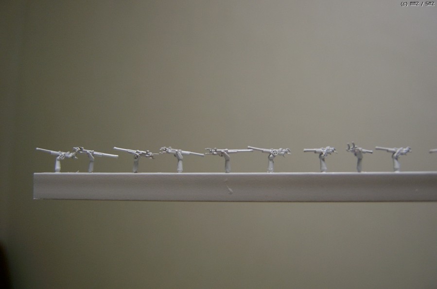 하여튼 그렇게 해서 도색대기중인 부분만 늘어나고 있습니다. 메모꽂이에 물려 둔 15cm 부포, 플라로드에 순접으로 붙여 둔 10.5cm 대공포와 37mm 대공포, 20mm 대공포 등등, 그리고 선체. 여기까지 서페이서 입혀놓고 슬슬 칠할 준비를 하는 중인데... 정작 수퍼스트럭처와 거기 딸린 부분들 및 28cm 포탑은 아직 서페이서도 입히지 않았고, 작업도 지지부진입니다. 음냐. -_-;