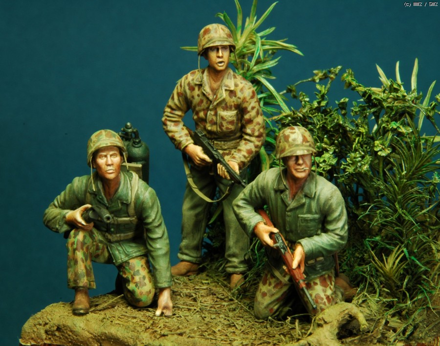 에나멜, 유화, 아크릴로 도색 했습니다. 큰 스케일 인형 칠하다 작은 걸 칠하니 감잡기가 영...