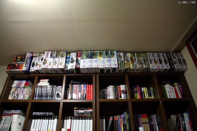 호기심에 몇개 사본 에어로와 책장위에 공간이 없어서 쌓아둔 곳입니다.