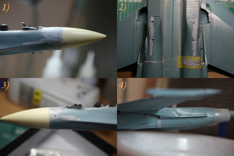 1) 수정된 노즈콘을 별매로 붙이니 단차가 발생합니다. 타미야 베이직퍼티로 발라주었구요.