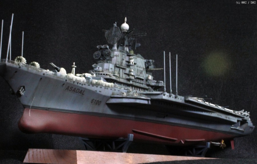 기본도색을 마무리하고 마무리 작업중에 함교를 두번이나 떨어뜨려 먹어서 휘어진 부분이 조금 많이 있습니다.