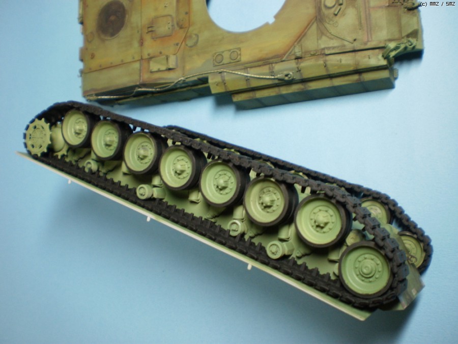 궤도 모습. 바퀴는 접착되있는 상태입니다. 궤도와 휠은 붙어있지않지만.