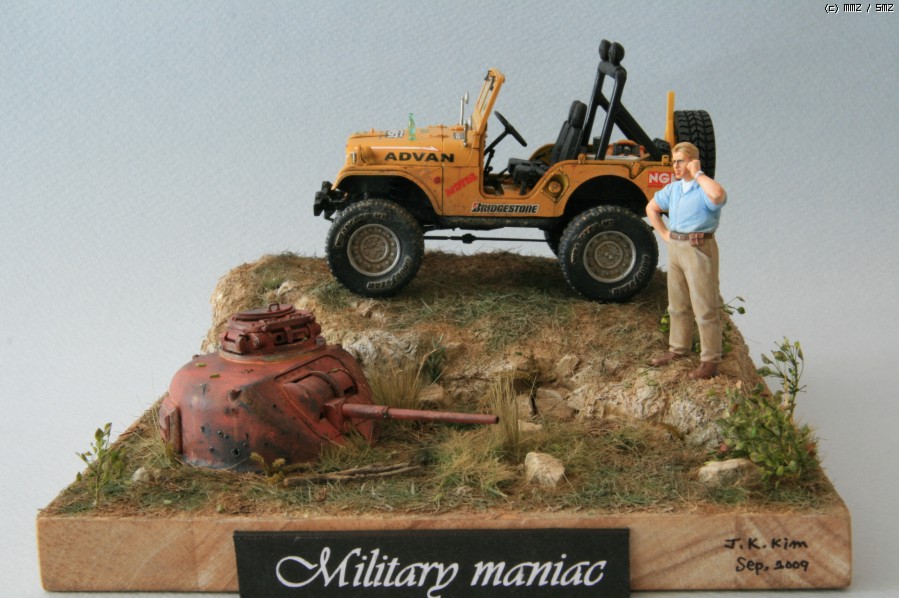 대분류를 Auto로 할까 잠깐 고민하다 그냥 디오라마로 편입시켰습니다. 처음엔 좀 큰 사이즈를 기획했으나 M3 덩치가 좀 과해 보이고 조립도 난해하여 머리만 떼다 출현시켰습니다. (실제 이런 장면도 본 듯하여..). 요즈엔 주로 사재기 품목 소진하는 쪽으로 기획하다 보니 이런 생뚱맞은 조합도 탄생하네요. 제 꿈 중 하나가 짚차 하나 사서 독일군 삼색 위장하고 타고 다니는 건데 그런 취지에서 제작해 봤습니다. 마지막 사진 보시면 아시겠지만 지금도 외국에선 M38 개조하고 타고 다니시는 사람이 꽤 되더군요 (우리 아파트에도 레토나 쇼바 올리신 분 3분 봤습니다). 작품상에선 밀리터리 매니아인 우리의 주인공 'tom'이 M3 흔적을 발견하고 반색하며 세계적 사이트가 된 MMZ에서 만난 동호회원과 통화하는.. 그런 내용 되겠습니다.