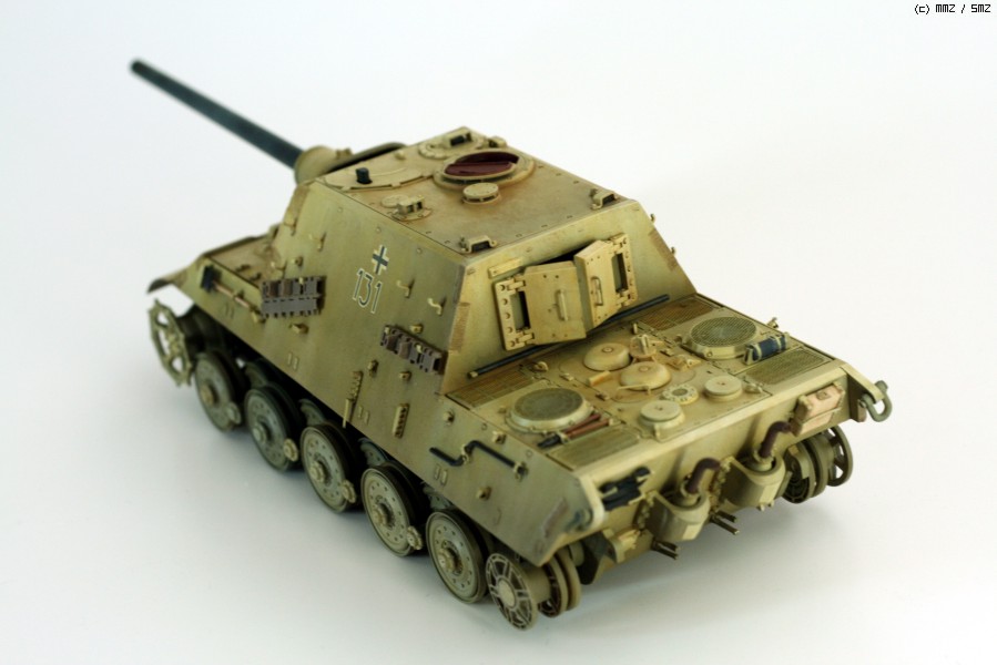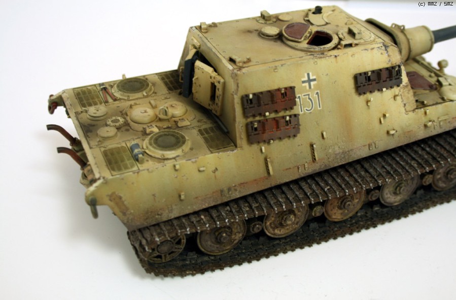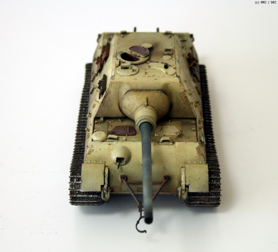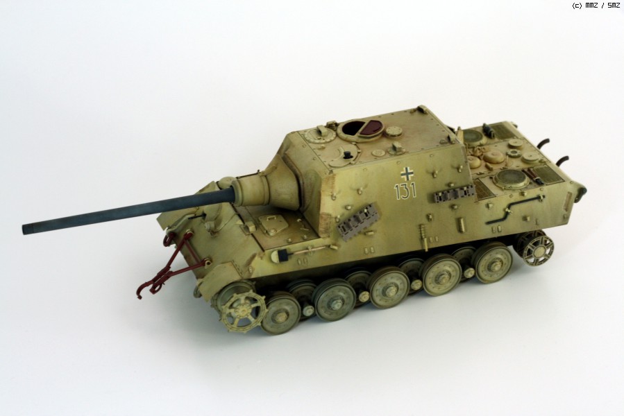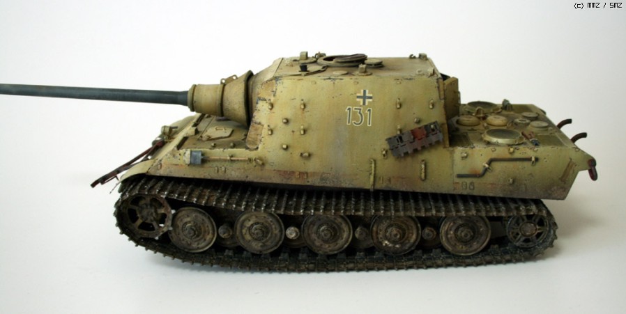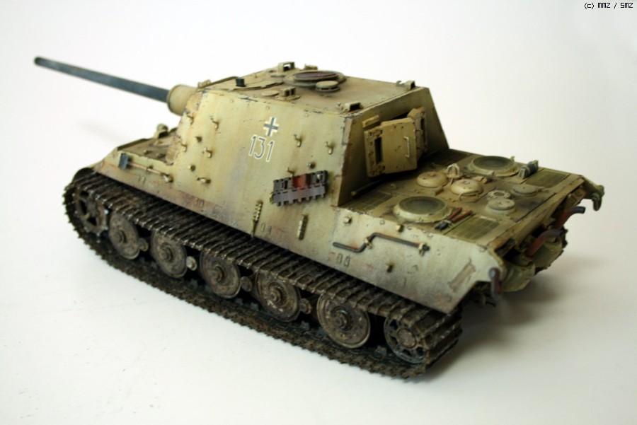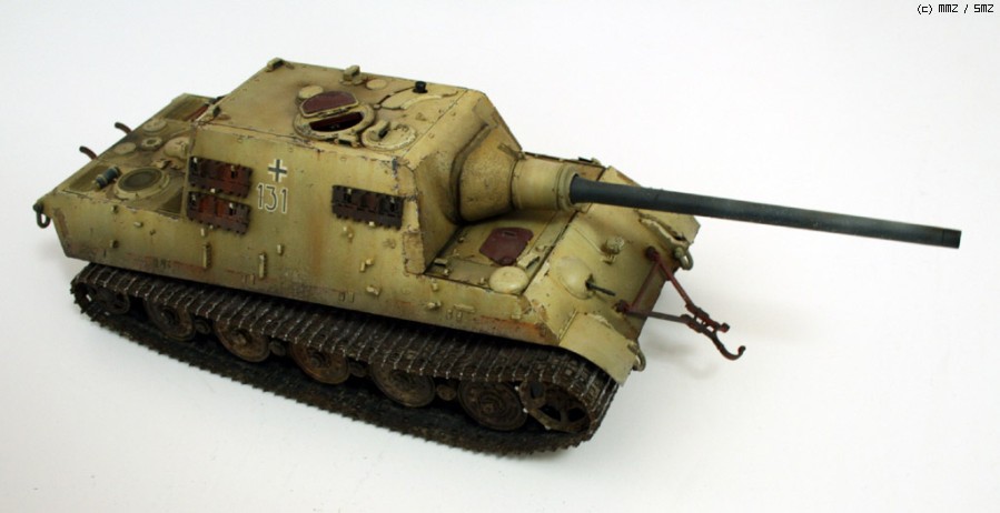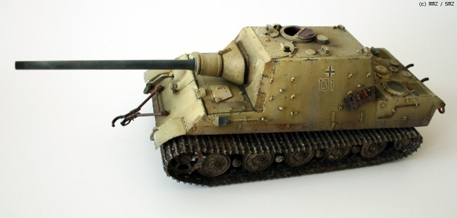 완성한지는 조금 되었지만 올려봅니다. 비싸기로 소문난 타미야 jagdtiger인데, 7만원대일때 구해서 만든 물건입죠.. 지금은 6만원대더군요...... 모형시작하고 처음으로 에칭이란걸 사용해보았습니다만, 반이상은 조립실수+심신이 지쳐서 그냥 버리게 되었습니다. 키트에 들어있는 반연결식 트랙도 도색을 망치는 바람에 모델카스텐제 트랙으로 바꿨지만, 조립이 힘든 건 둘째치고, 도색도 중 깨져나가서 정말 괴로웠습니다. 다시는 건드리고 싶지 않은 물건이더군요..-.,-; 제 성격에는 그냥 키트 그대로 만드는게 돈도 절약하고, 딱 좋은 것 같습니다.