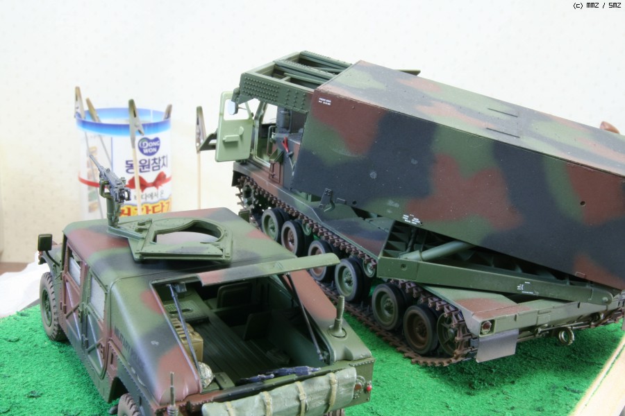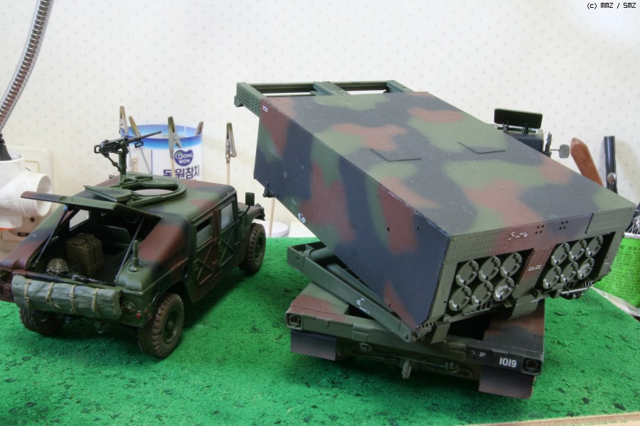 장터에서 구입했던 MLRS 나토버전과 아카데미 M1025입니다. 바닥은 자신이 없어서 그냥 풀표현제 뿌렸습니다.