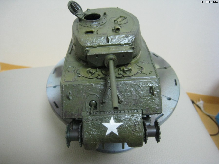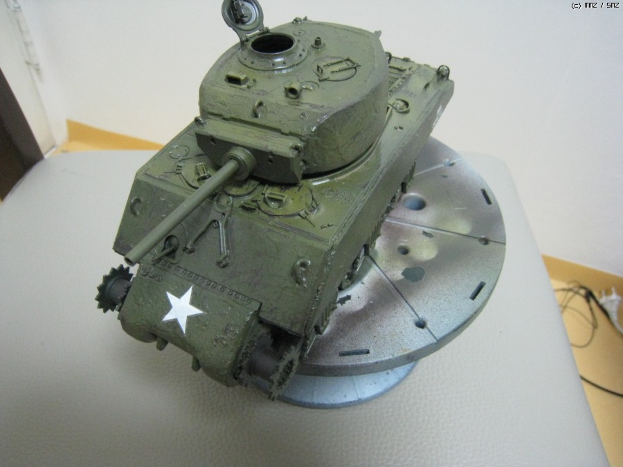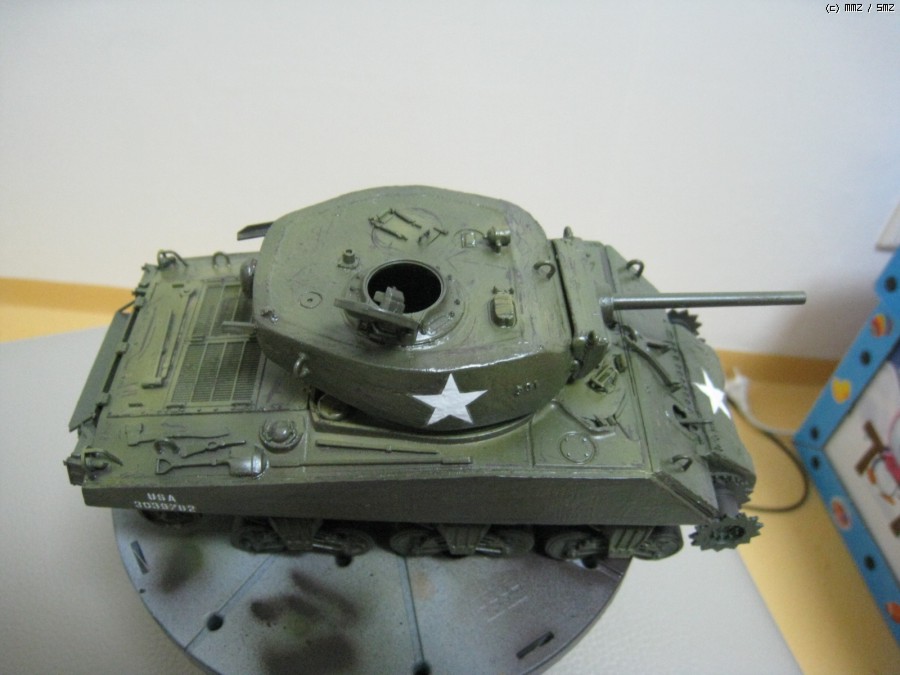 여러가지 남은 갈색계통의 색으로 밑바탕칠을 아크릴로 칠했습니다. 하루정도 말리고 헤어스프레이로 코팅을 하고 탱크그린(발레조)+다크옐로(발레조)를 섞어서 차체를 칠했습니다. 그리고 한시간정도 기다린후 면봉과 거친 붓으로 모서리 중심으로 까기를 했습니다.