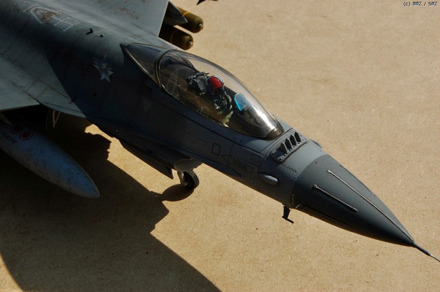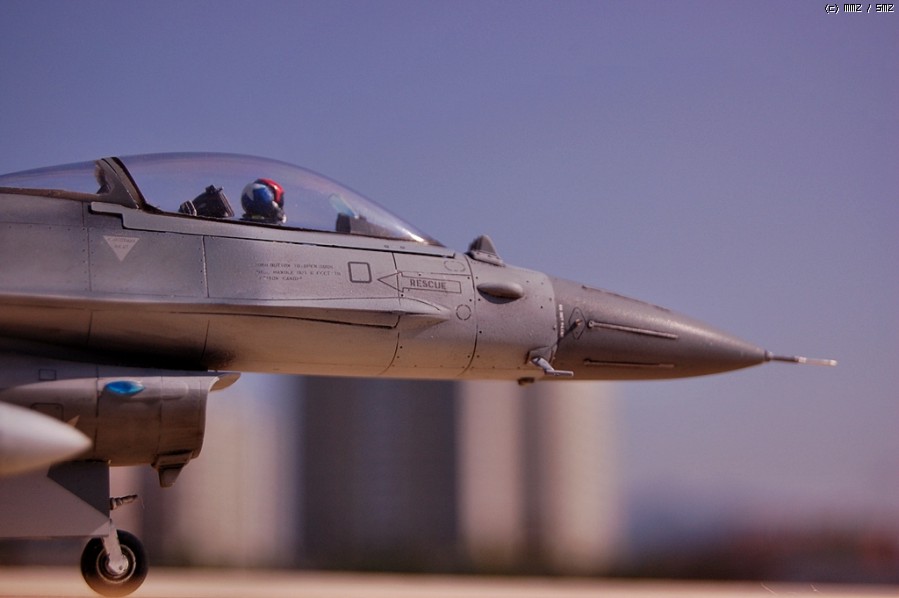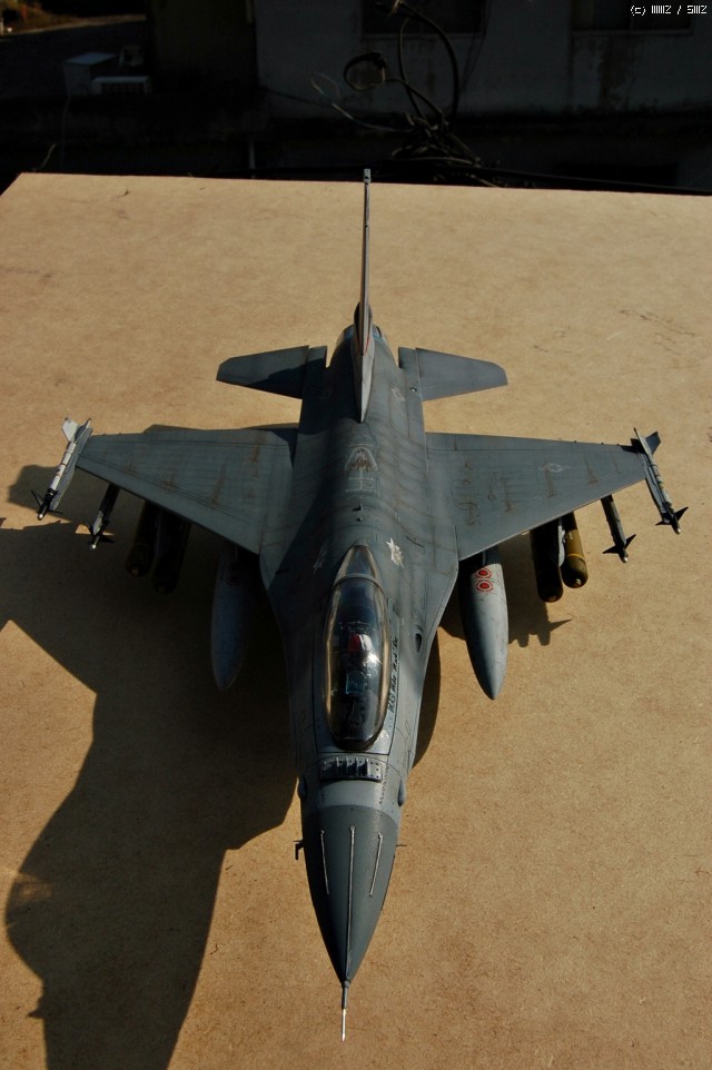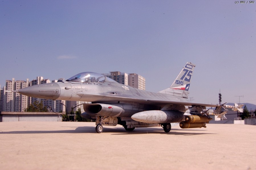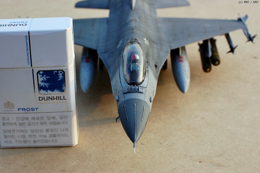 안녕하세요 매일 좋은 구경만하다....오랜동안 모형을 쉬다 다시 손을 데서 최근 마무리한 녀석하나를 소개해볼까 합니다. 아카데미F-16을 베이스로 각각 좀더 나은 모양이나 디테일이 나은 남는 다른메이커들의 부품들을 조합해서 만들었구요 실사진을 많이 참고하고 싶었지만 검색내공이 부족해서인지 실사진을 보질 못했네요 ^^;; 각종 가능성을 토대로 할수있는 한에서 해봤습니다 퍼즐맞추듯이 참 재미있었구요 모쪼록 다른회원님들도 즐거운 모형생활 하셨으면 좋겠습니다