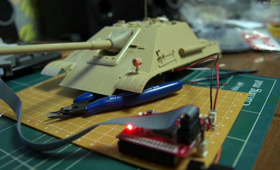 사진에 볼 수 있듯이 야크트 판터의 헤드라이트에 불이 들어오게 하는데 성공 했습니다.