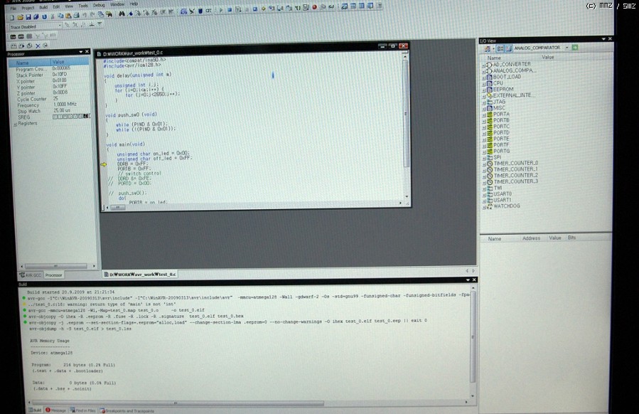 AVR 개발 환경 입니다. AVR 펌웨어 코드라고 해 봤자.. 회사에서 맨날 만드는 코드에 비하면 새발의 피 라고나 할까요 -_-; 악몽의 S3C6440이나 6410에 비하면 register 갯수도 몇개 안 되니 그냥 datasheet 들여다 보면서 짜고 있습니다. ;-)